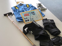 動きを制限する装具や視野を狭くする眼鏡をかけて、高齢の方が感じる身体の動きを体験できるセットをお貸しいたします。