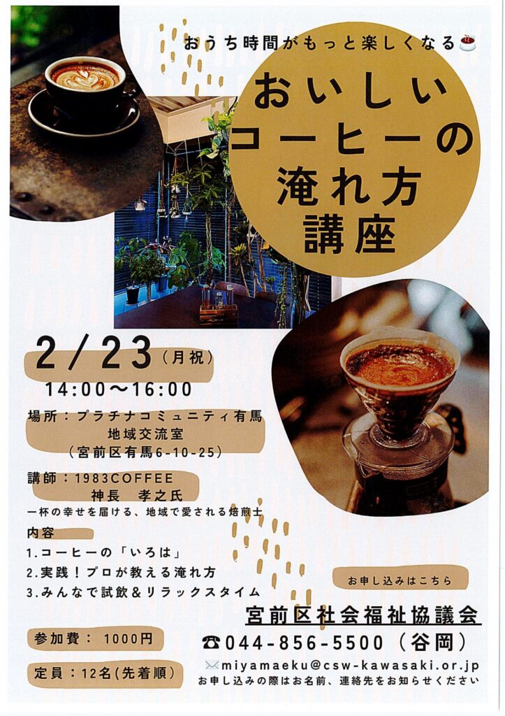 ボランティア入門講座「おいしいコーヒーの淹れ方講座」