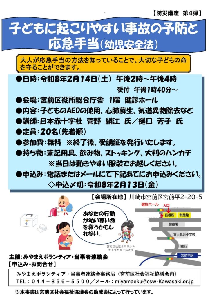 みやまえボランティア・当時者連絡会 防災講座 第4弾「子どもに起こりやすい事故の予防と 応急手当(幼児安全法)」